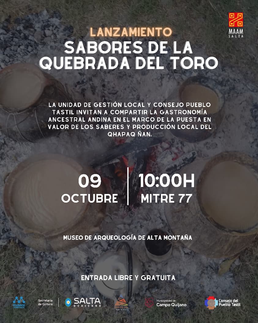 El Museo de Arqueología de Alta Montaña (MAAM) será sede del lanzamiento de “Sabores de la Quebrada del Toro”, un evento que celebra la gastronomía y los saberes ancestrales andinos. La presentación se realizará el jueves 9 de octubre a las 10:00 horas en la...