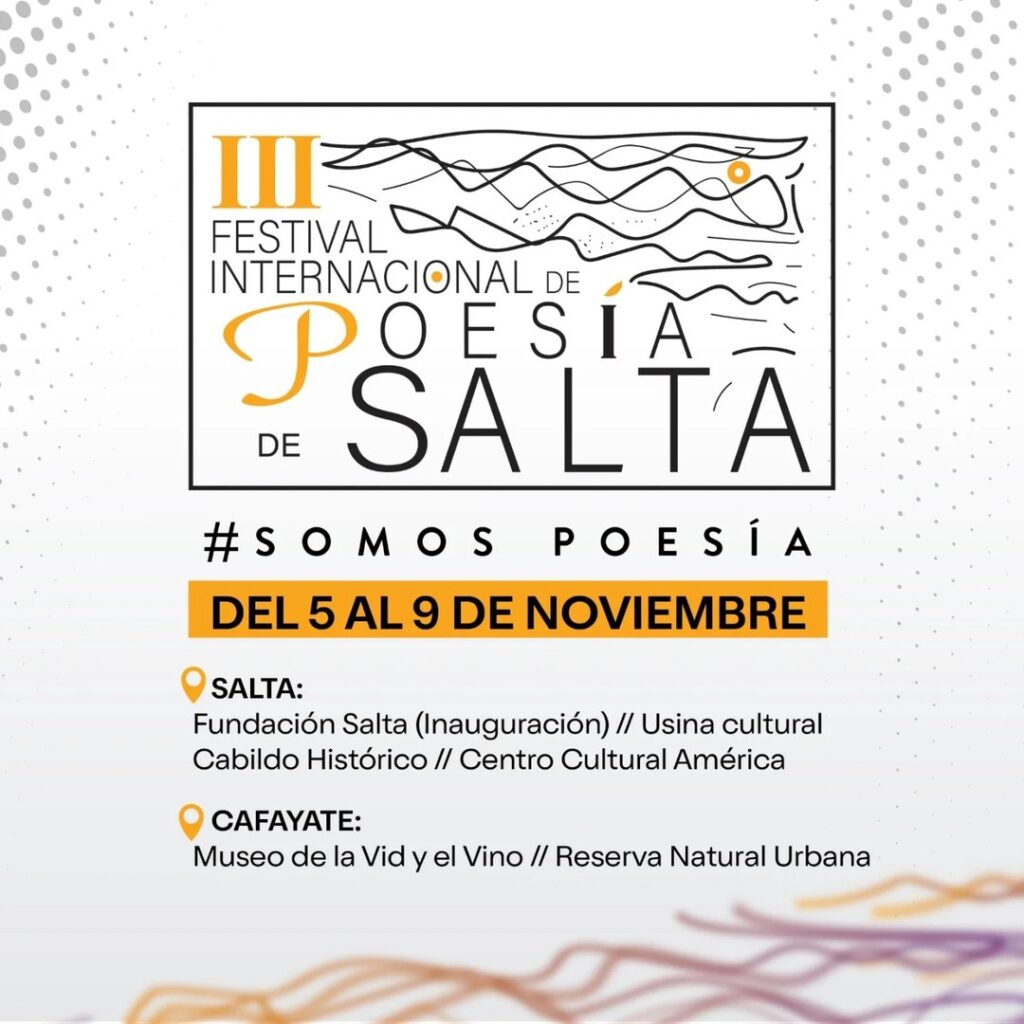 Del 5 al 9 de noviembre se realizará el III Festival Internacional de Poesía de Salta, un encuentro que convoca a destacadas y destacados poetas provinciales, nacionales e internacionales para celebrar la palabra en todas sus formas. Organizado por la Asociación Festival Internacional de Poesía Salta, el evento cuenta con el acompañamiento de la Secretaría de Cultura de la Provincia.