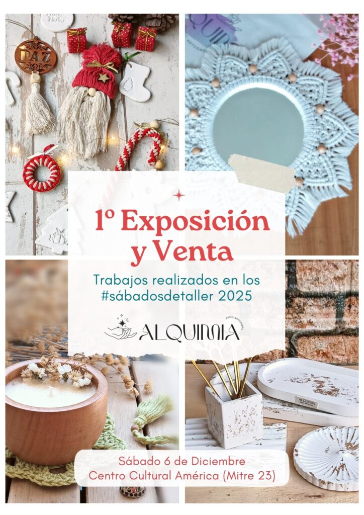 El Centro Cultural América se prepara para la exposición y venta de productos artesanales realizados en el ciclo Sábados de taller 2025 de Alquimia Decoartesanal, una propuesta que reúne oficio, creatividad y la experiencia de quienes dedicaron el año a formarse en nuevas técnicas. El encuentro tendrá lugar el sábado 6 de diciembre, de 12 a 20, en el Centro Cultural América, ubicado en Mitre 23, con entrada gratuita.
