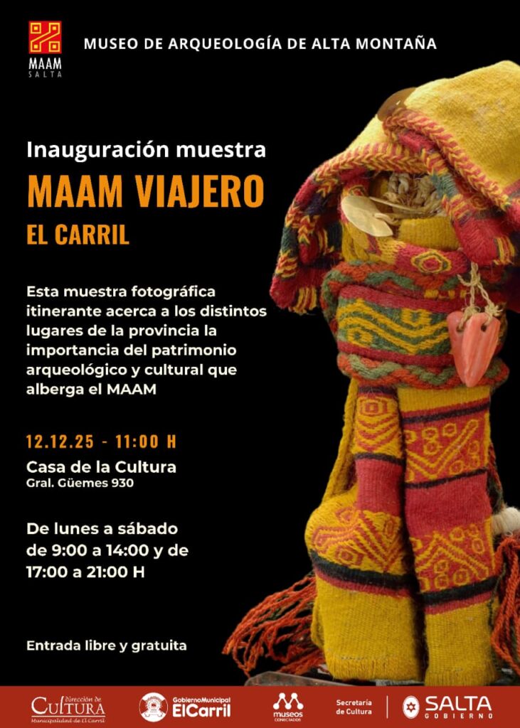 El MAAM Viajero será inaugurado el viernes 12 de diciembre a las 11 en la Casa de la Cultura de El Carril, ubicada en General Güemes 930. La exposición podrá visitarse de lunes a sábado, de 9 a 14 y de 17 a 21, con entrada libre y gratuita. Además, la actividad se sumará a la programación provincial de La Noche de los Museos, que tendrá lugar el 13 de diciembre en distintos espacios culturales de Salta, ampliando así las oportunidades para que vecinos y visitantes disfruten de esta propuesta.