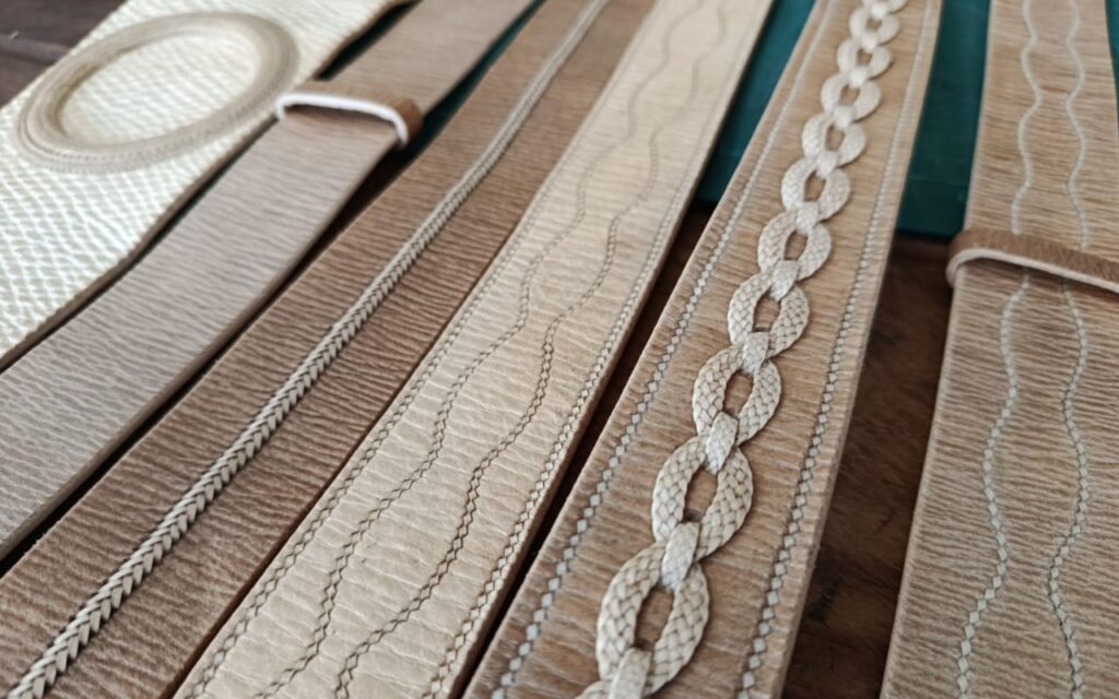Durante la capacitación, los asistentes se interiorizaron en el uso de materias primas como cueros de cabra, vaca y potro, así como técnicas específicas que incluyeron corte de tientos y cinco costuras básicas en cuero, como esterilla de uno y tres tientos; eslabones con un tiento; costura de dos cabos (rombitos) de dos tientos y costura de bordes. También se realizaron trenzas de cuatro y seis tientos redonda.