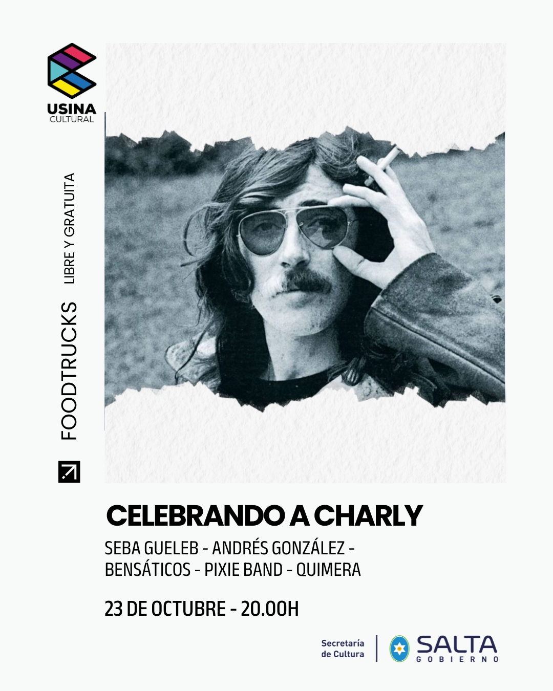 Además del show musical, el público podrá disfrutar de las propuestas gastronómicas de los food trucks en un ambiente familiar. La actividad es organizada por la Usina Cultural, la Secretaría de Cultura y el Gobierno de la Provincia de Salta, en homenaje a uno de los artistas más influyentes de la música nacional.