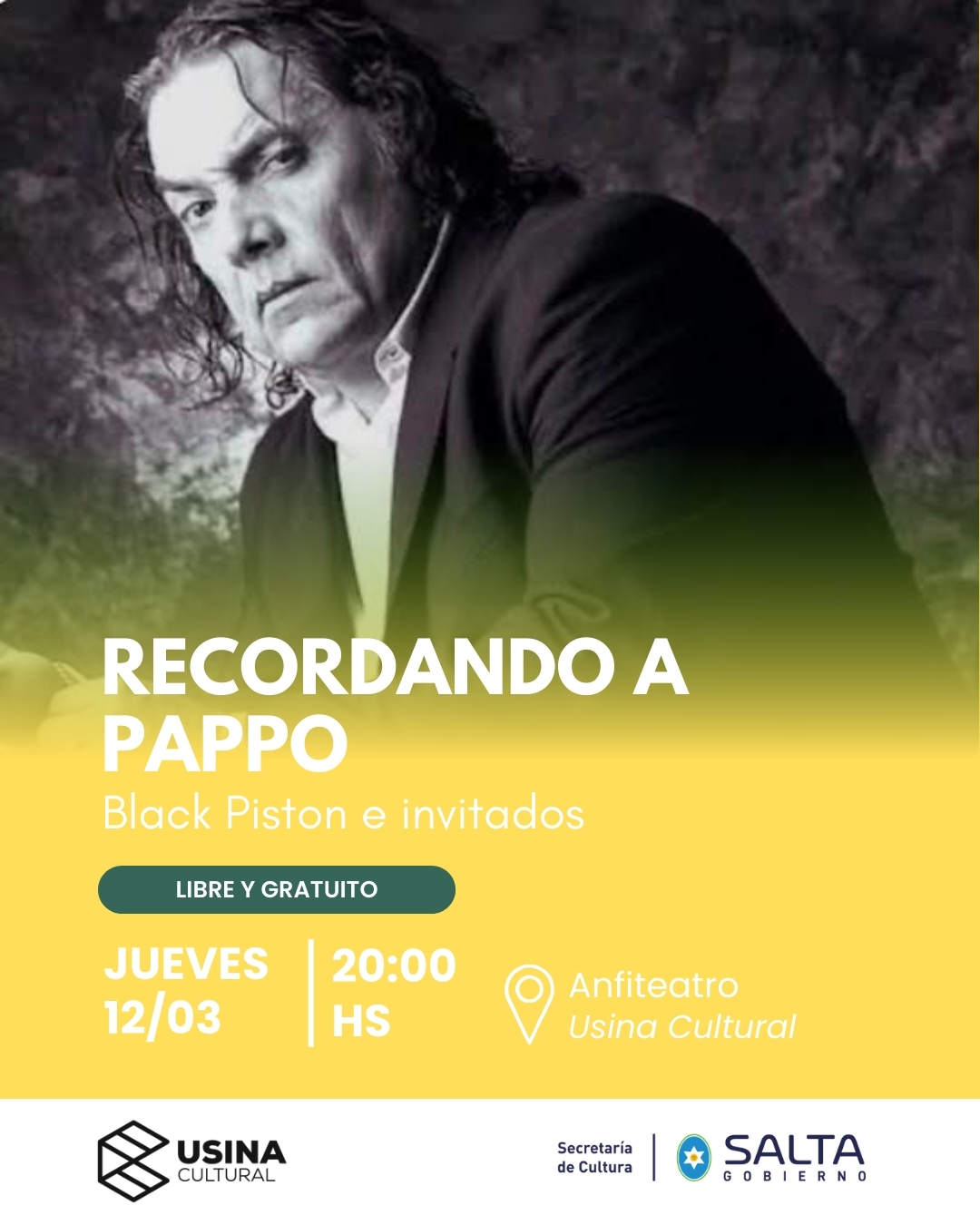 La presentación estará a cargo del trío Black-Pistón, que interpretará clásicos de Pappo’s Blues y Riff, recorriendo algunas de las canciones más representativas del rock nacional.