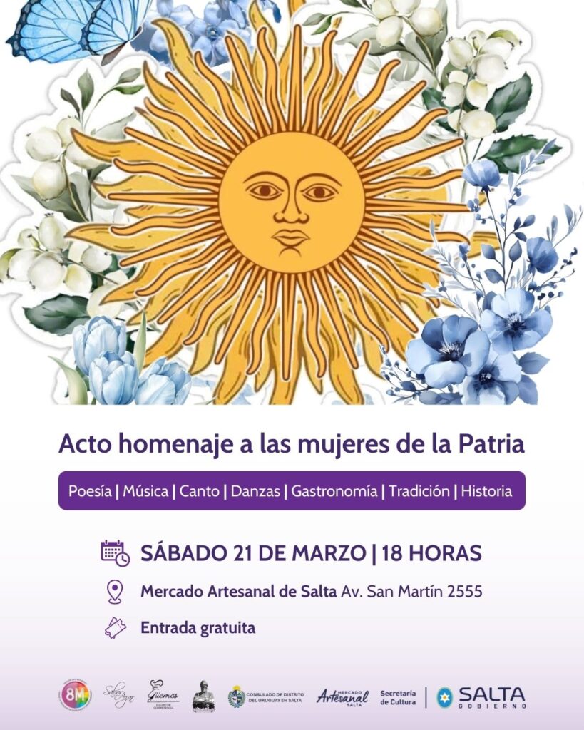 En el marco del Mes de la Mujer, el Mercado Artesanal de Salta en forma conjunta con el Instituto Güemesiano de Salta; el Consulado Distrito del Uruguay en Salta; Güemes. Equipo de Competencia; Sabor Azar y Fundación Juana Manuela Gorriti filial Rosario de la Frontera, invitan a participar de una jornada que busca homenajear a quienes fueron protagonistas de la historia argentina, destacando su valentía y entrega por la Patria.