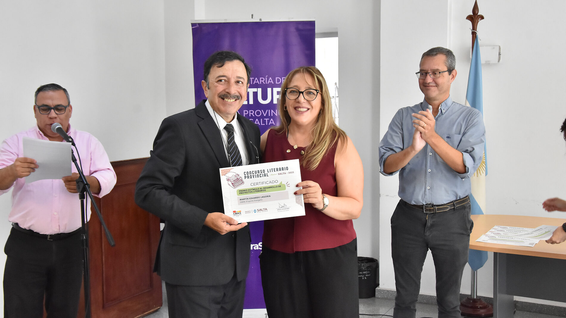 El acto de entrega contó con las palabras del secretario de Cultura, Diego Ashur, quien asumió con humor y compromiso el desafío propuesto por la autora María Herrera de leer un fragmento en el particular lenguaje de su obra Níac Tité. Entre trabalenguas y sonrisas, el funcionario puso en escena la complejidad y la riqueza del acto comunicativo. “La comunicación no es un proceso unilateral ni sencillo; debemos estar abiertos a otras formas de expresión y no creernos dueños de los cánones”, expresó, vinculando esa reflexión con el espíritu del concurso, al que definió como una celebración de las letras salteñas y parte de una política cultural sostenida en el tiempo.